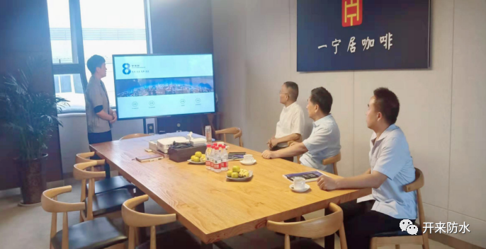 王洋云經(jīng)理匯報了開來濕克威企業(yè)文化、開來、濕克威、樂活、一寧四大品牌、16大特色產(chǎn)品及國內(nèi)外典型工程;開來濕克威具有一級防水保溫防腐資質,從1993年在上海創(chuàng)辦以來累計施工項目30000多個,專利29項,參與編制修訂國家、省級標準30多項,是一家集防水材料生產(chǎn)、銷售、施工及技術服務的專業(yè)防水系統(tǒng)提供商。