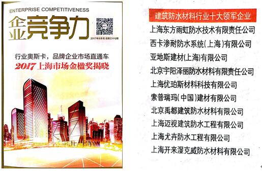本屆金楹獎活動中,以綠色環保、呵護人類建筑安全為己任的生態防水創領者 — 上海開來濕克威防水材料有限公司,榮獲上海市建筑防水材料行業十大領軍企業金楹獎。